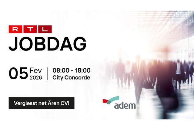 Den RTL Jobdag zesumme mat der ADEM. Rendez-vous um Stand vum INFPC fir Iech iwwert d'Weiderbildungsofferen an déi entspriéchend Demarchë z'informéieren!